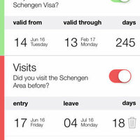 The app will save the history of your visits locally on your iPhone, iPod or iPad. It will count the days you already used and will suggest duration for your next trip.