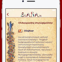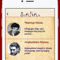Sharan is a library of audiobooks exceptionally in Armenian and includes creations of Armenian Classical Writers from V century to our days. Creatins of such Armenians as Pavstos Buzand (V c.), Grigor Narekaci (X-XI c.), Nerses Shnorhali (XII c.), Sayat Nova (XVI c.), Hakob Paronyan (1843-1891), Petros Duryan (1851-1872), Misaq Metsarenc (1886-1908), Hovhannes Tumanyan (1869-1923), Paruyr Sevak (1924-1971), Hamo Sahyan (1914-1993), Pertch Zeytuncyan (b. 1938) and many others. Among performers there are Hrachya Nersisyan, Sos Sargsyan, Sargis Najaryan.