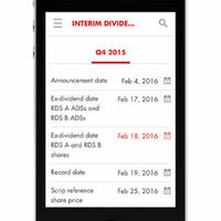 The Shell Investor Relations & Media app gives you our latest news and Tweets, strategy, share price information, dividend announcements, bonds and credit rating information and details of forthcoming events. You can now access and download our most recent quarterly results (including live and archived webcasts); read annual reports, including our Sustainability Report and Investors’ Handbook; read speeches and view presentations by Shell’s senior leaders; watch Shell videos and download photographs from our operations around the world. The app will help keep investors and journalists up to date on developments at Shell. To discover more, download it for free from the App Store.