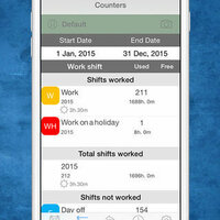 - App comes with the following 'shifts' already created (T-work, TF-Work on a holiday, L-Day off, LF-Day off on a holiday, V-holidays).