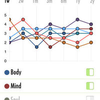 Tracking yourself each day with Shift Wheel produces two separate graphs: a colorful life wheel that creates a picture of your life and shows how well it’s balanced and how it’s shifting over time; and a line graph that allows you to track each of your life categories over time, both individually and with respect to one another.