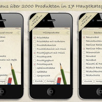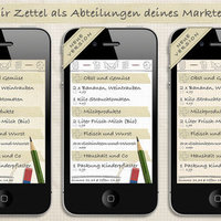 Add products from the intern asset (hundreds of articles in 17 categories), arrange them by the sections of your supermarket, and you'll be prepared for your shopping.