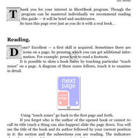 ShortBook is an electronic book reader using unique capabilities of your iPhone. It has everything that is necessary for comfortable reading of books in fb2 format: contents, figures, footnotes and unique text makeup. Handy interface allows finding books quickly and reading them with comfort. Night reading mode will reduce discomfort for those who suffer from sleeplessness and Quick Bookmark function will ensure free browsing through a book. Book downloading is available via Wi-Fi being handily implemented through the web browser. For your further comfort there are options of choosing font, its size and other settings.