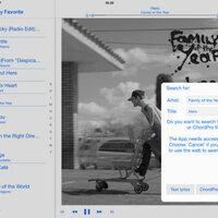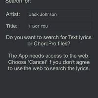 Sing a Song plays the songs of the Music App and shows the assigned lyrics. You can assign lyrics, PDFs, or ChordPros to each song. You could create your own lyrics, or you could search and copy them automatically from the web.