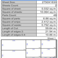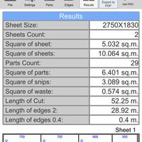 - automatic calculation of the area of parts and pieces, cut length, the length of the edges;