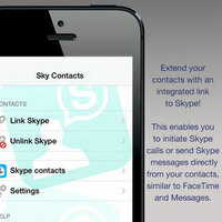 Sky Contacts connects Skype to your contacts and enables you to start a Skype call or a Skype conversation (by activating Skype) with the contact you are viewing from your favorite Contacts app.