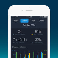 - View sleep history - your personal tracking log - within a clean, modern app design, including daily stats and overviews for longer time periods (i.e. a selected week or month)