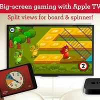 Or supersize the gameplay with AppleTV. You get split views of the board, one on your TV — we call it the family view — and a turn view on your iPad or iPhone. Pass it around the table!