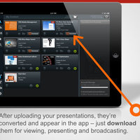 • Broadcast presentations over the web to remote or in-person attendees via unique URL from your iOS device!
