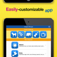 The application includes five basic categories(The World of Animals, Vehicles, Wild Animals, Musical Instruments, Home) and the ability to add more.