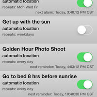 * Reminders and Alarms: Use Sol as a natural alarm clock that you can set to any event (like sunset, golden hour or solar noon), and the alarm or reminder time will adjust gradually as the days change with the seasons.