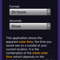 This application shows the apparent solar time, the time you would see on a sundial at your current location. It is the combination of the mean solar time (which depends on the longitude at your current position), the time difference from the solar equation which changes over the year because of the ecliptic path of the earth around the sun and optional daylight saving in the summer.