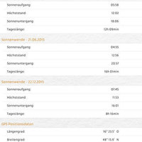 Detailed information about the track of the sun and its position at any time is available right on the screen or in the Detail View.
