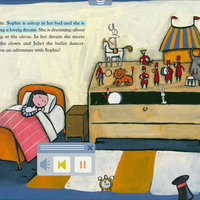 ‘It’s late. Sophie is asleep in her bed and she is having a lovely dream. She is dreaming about a day at the circus. In her dream she meets Giggles the clown and Juliet the ballet dancer.’