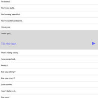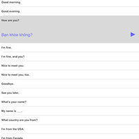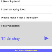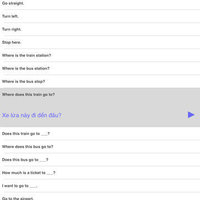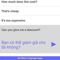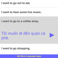 Great for travel or study! Speak Vietnamese Travel Phrasebook is an easy to use talking phrasebook app for the Vietnamese language. Each phrase is displayed in Vietnamese and English translation. Hear the audio for each phrase in a clear, pleasant voice from a native Vietnamese speaker. There are a total of 500 words and phrases in the following categories: