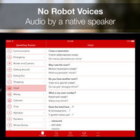 • Phrase packs include audio recordings by a native speaker, Russian translation and phonetic translation.
