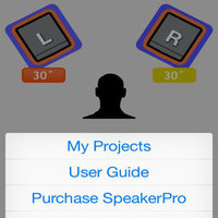 To use SpeakerAngle, simply create a stereo or surround sound project and name it. Then adjust your speakers so they are facing straight ahead. Place your iPhone, iPad, or iPod Touch on top of one of the speakers and press the corresponding onscreen icon, then rotate that speaker towards the listening position.