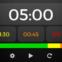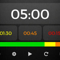 A timeline shows you where you are in your speech at a glance. It includes a moving indicator, and colored bars to show the position of the warning sections. Time is displayed in the default HH:MM:SS format, or in a more readable minutes or seconds format. Can be used in count down (default) and count up modes.