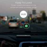 Works in both standard and HUD mode. HUD mode allows using your smartphone or tablet as a projector. Just place your device close to the windshield, and the screen image will get reflected and displayed on the windshield. Keep your eyes on the road — everything you need is displayed right in front of you!