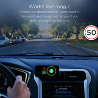 The app is straight and handy, with no tricky settings. Launch the app and place the phone onto the dashboard close to the windshield (if you want to use it in Head-Up Display or HUD mode and see the reflection on the windshield), or into the mount (for standard use). It's specifically designed to offer you a safe and non-distracting visual assistance.