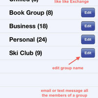 * Double tapping on a name in Contacts list displays ALL information about contact and allows information to be edited