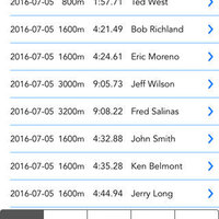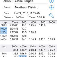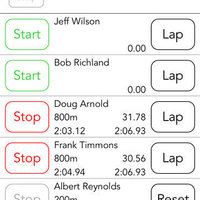 - Automatically calculates the split breakdown as you are timing. For example, if set for 200m intervals would yield each 200m, 400m, 800m, and 1600m (or 1000m if in Kilo split mode) throughout the race.