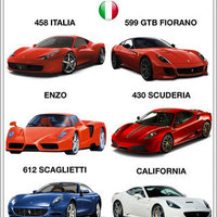 - FERRARI: Enzo - 458 Italia - 599 GTB Fiorano - 599XX - California - F430 Scuderia - 612 Scaglietti - 360 Modena - 575M Maranello - F50 - F40 - F355 Spider - 348 Spider - Testarossa - FF - P4/5 Competizione - F12 Berlinetta