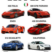 - FERRARI: Enzo - 458 Italia - 599 GTB Fiorano - 599XX - California - F430 Scuderia - 612 Scaglietti - 360 Modena - 575M Maranello - F50 - F40 - F355 Spider - 348 Spider - Testarossa - FF - P4/5 Competizione - F12 Berlinetta