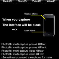 When you capture photo or video, the iPhone's interface will be black, so no one will notice you. It support iPhone4's front camera.