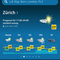 Informieren Sie sich schnell und einfach über das Wetter an Ihren Lieblingsorten und vergleichen Sie die zugehörigen Prognosen auf einen Blick in der Favoritenübersicht. Das Niederschlagsradar zeigt Ihnen die Entwicklung der letzten sowie der kommenden Stunde. Bei Wetterextremen an Ihren bevorzugten Schweizer Orten werden Sie per Pushmeldungen und direkt in der App mithilfe der Wetterwarnungen gewarnt. Artikel der SRF Meteo Redaktion sowie Infos zum SRF Meteo Team bieten Ihnen einen vertieften Einblick in die Themen Wetter und SRF Meteo.
