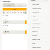 - Resultate-Center mit einzigartiger Breite: Von Hockey NLA über Fussball 1. Liga bis zu Volleyball NLA Frauen