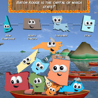 As you learn state capitals, cities, shapes, landmarks, flags and more, you can actually touch, move and drop the animated states anywhere on the screen. Carefully build a stack of states that reaches the checkered line to win each level.