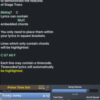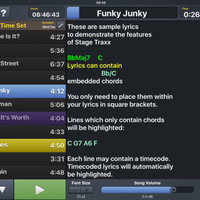 You can create playlists in Stage Traxx and add songs from your iTunes library. It will display embedded lyrics or comments with a large and easy to read font. An autoscrolling mode for the lyrics ensures that you don‘t need to interact with Stage Traxx during playback.