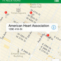- AED location : locate an AED close to you or in a specific address, through the use of an embedded database that is updated each time you launch the application.