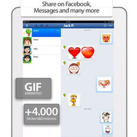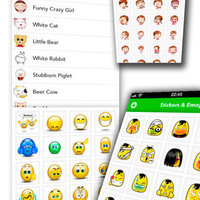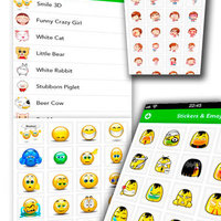 2.000 Stickers and emoticons that you can copy, save to your photo album and share on Twitter and Facebook.