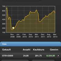 - Development line-graph that displays value of your portfolio, as individual stocks as well as total.