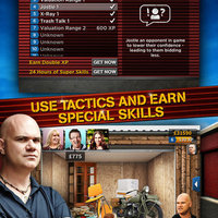 Become a better bidder by unlocking special skills, and using them strategically at the auctions. Make valuations to estimate the true value of items, see the contents of boxes with X-Ray vision and whittle down the bidding confidence of your opponents by trash talking.