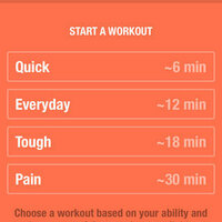 * 4 different workout lengths (approx. 6, 12, 18 or 30 minutes)