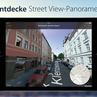 Drop a pin, search for a city or address or find a person from your contacts to view a nearby 360° street panorama. Switch the map to satellite or terrain mode and use the app in portrait or landscape as you prefer.
