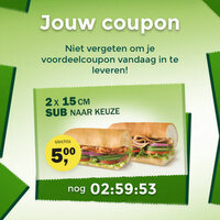 24 uur na het ontvangen van je coupon kun je weer opnieuw shaken voor een nieuwe voordeelcoupon. Zo kun je elke dag genieten van een lekkere én voordelige Sub!