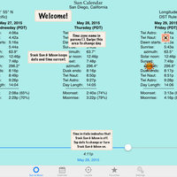For over 12 years we have been supplying Sunrise and Sunset calendars on our web site. We were awarded the Sky Award by the Griffith Observatory. We now have this app designed for the iPhone and iPad. All the features of the web site have been included plus more: