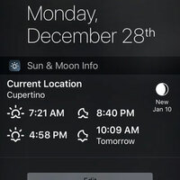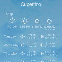 View the rise and set times for both the sun and moon at your current location or any city in the world. Look at today's times and future times in the same screen or check your Today view for a quick look for your current location.