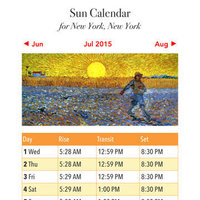 Sun, twilight, and day/night calendars can be set to almost any month and year in the past or future.