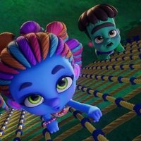 In SUPER MONSTERS, young monsters and magical beings learn the ins and outs of using their super abilities and of being good people at Pitchfork Pines Preschool. The descendants of such famous folks as Frankenstein and Dracula, these preschoolers arrive at school just as the sun goes down and they transform from humans into their alter egos: Katya (Andrea Libman), a witch; Frankie (Erin Matthews), a monster; Drac (Vincent Tong), a vampire; Lobo (Alessandro Juliani), a werewolf; Zoe (Nicole Anthony), a zombie; and Cleo (Elyse Maloway), a mummy. Under the gentle instruction of teachers Igor (Ian James Corlett) and Esmie (Britt McKillip), these youngsters learn about being good people and good monsters.