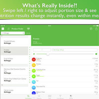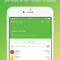 • Colorful, graphical display of serving size results which adjust while you swipe from left to right and observe the impact of different portions on your diet