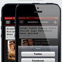 + Satu sentuh untuk berbagi artikel anda ke Facebook, Twitter, Instapaper, Read It Later, GoogleReader, Pinboard, Tumblr, Delicious. Atau anda dapat menyalin, email, SMS, buka artikel di Safari.