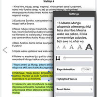 Swahili Bible is the Swahili Union Version (SUV) Bible version for your iPhone, ipad and iPod. Offered with KJV English Bible, utilizing the power of apple device for Kiswahili speaking community.
