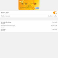 • „Paslaugų nustatymuose” galite įjungti ar išjungti smulkių mokėjimų paslaugas („Siųsti” ir „Gauti”), sąskaitos likučio rodymą („Greitasis likutis“) bei pasikeisti kitus nustatymus.