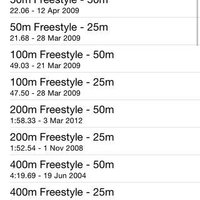 - A list of all personal records per swimmer, with easy features to sort and organize all the times