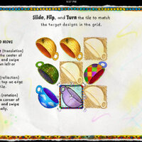 THE PUZZLE: Target designs are arranged on the screen in random orientations. Use turns (rotations), flips (reflections), and slides (translations) to move and match a figure over the target images. A level is completed when all of the target designs have been matched There are two modes of play, solve and race.